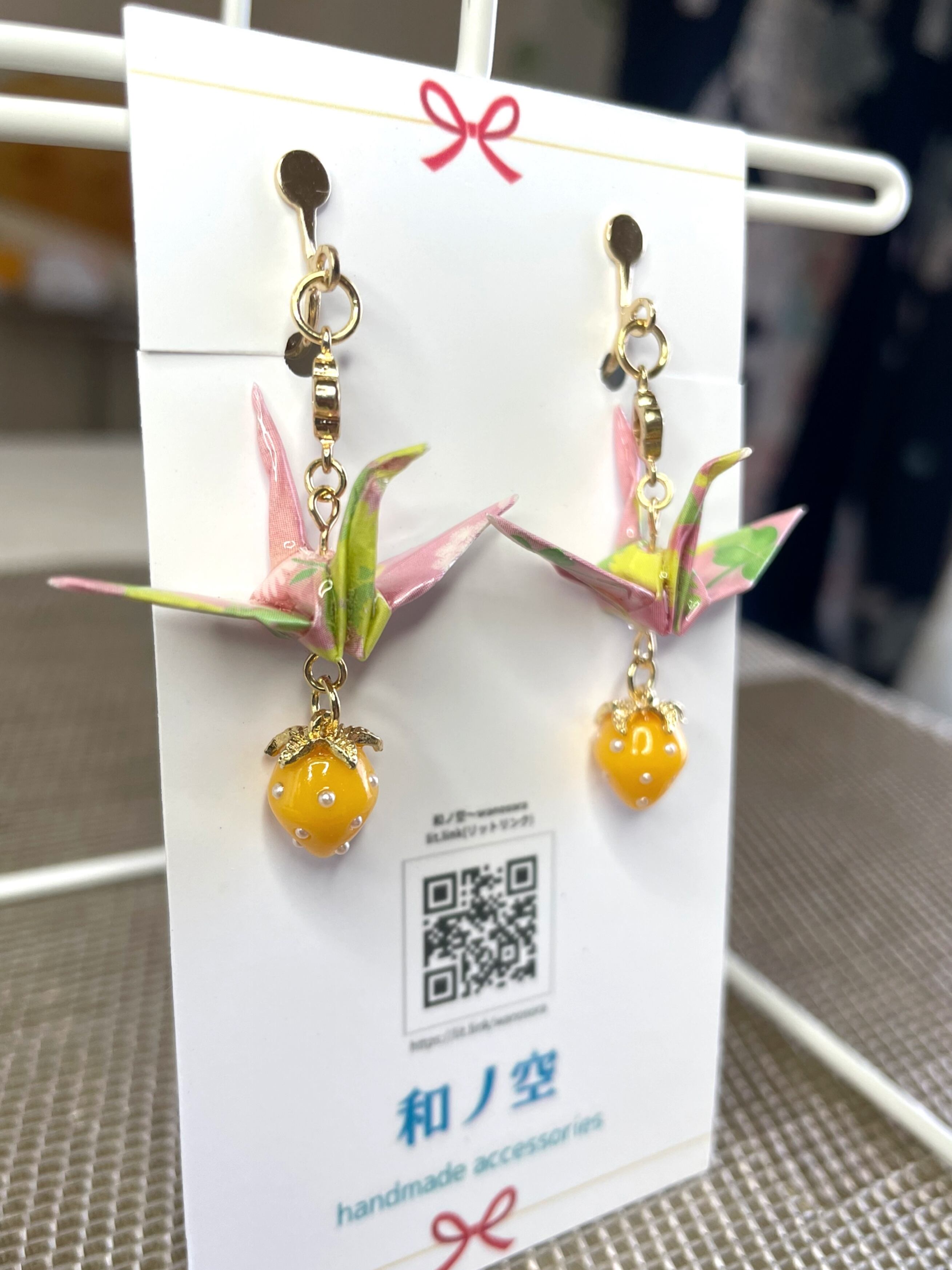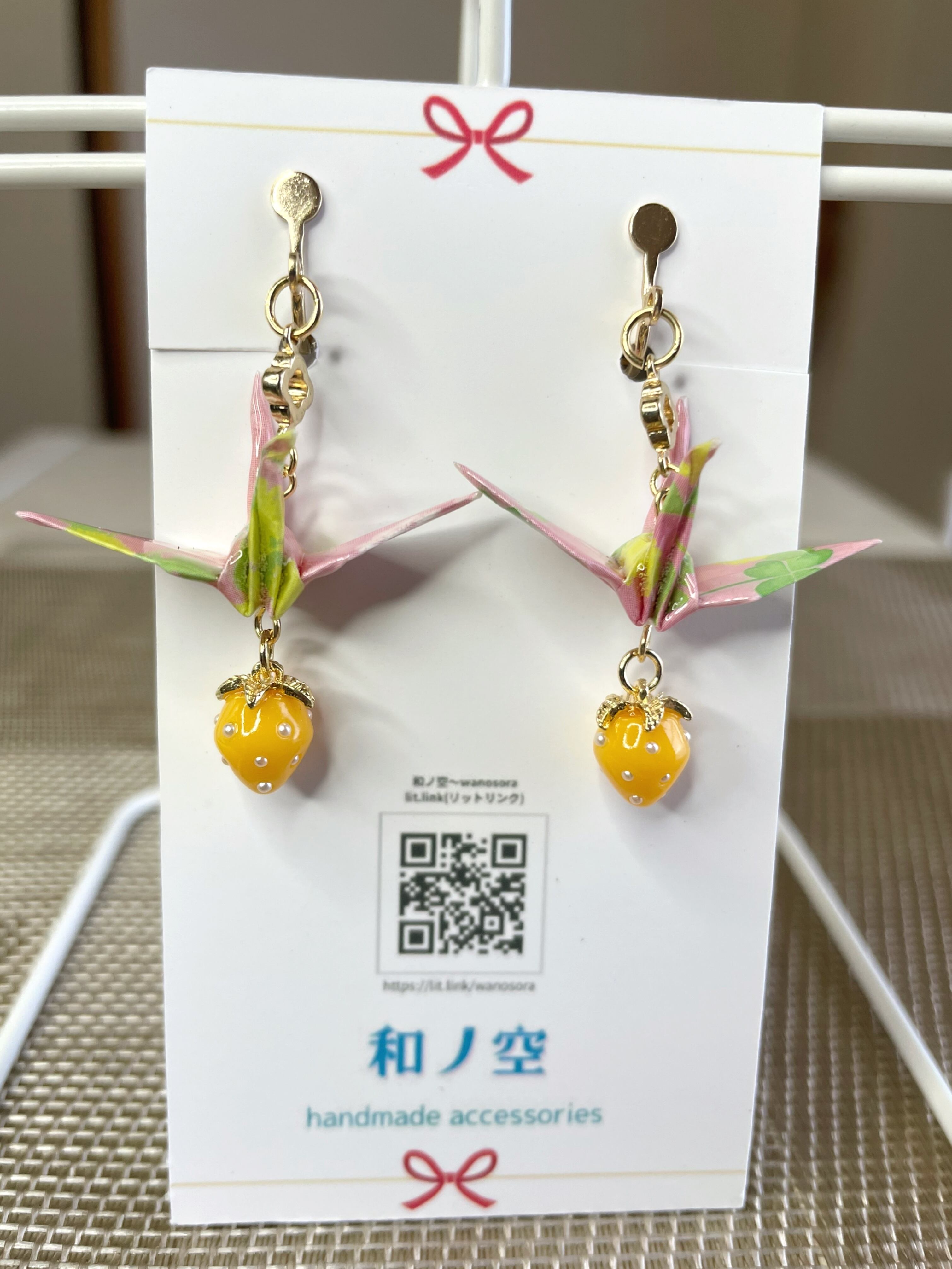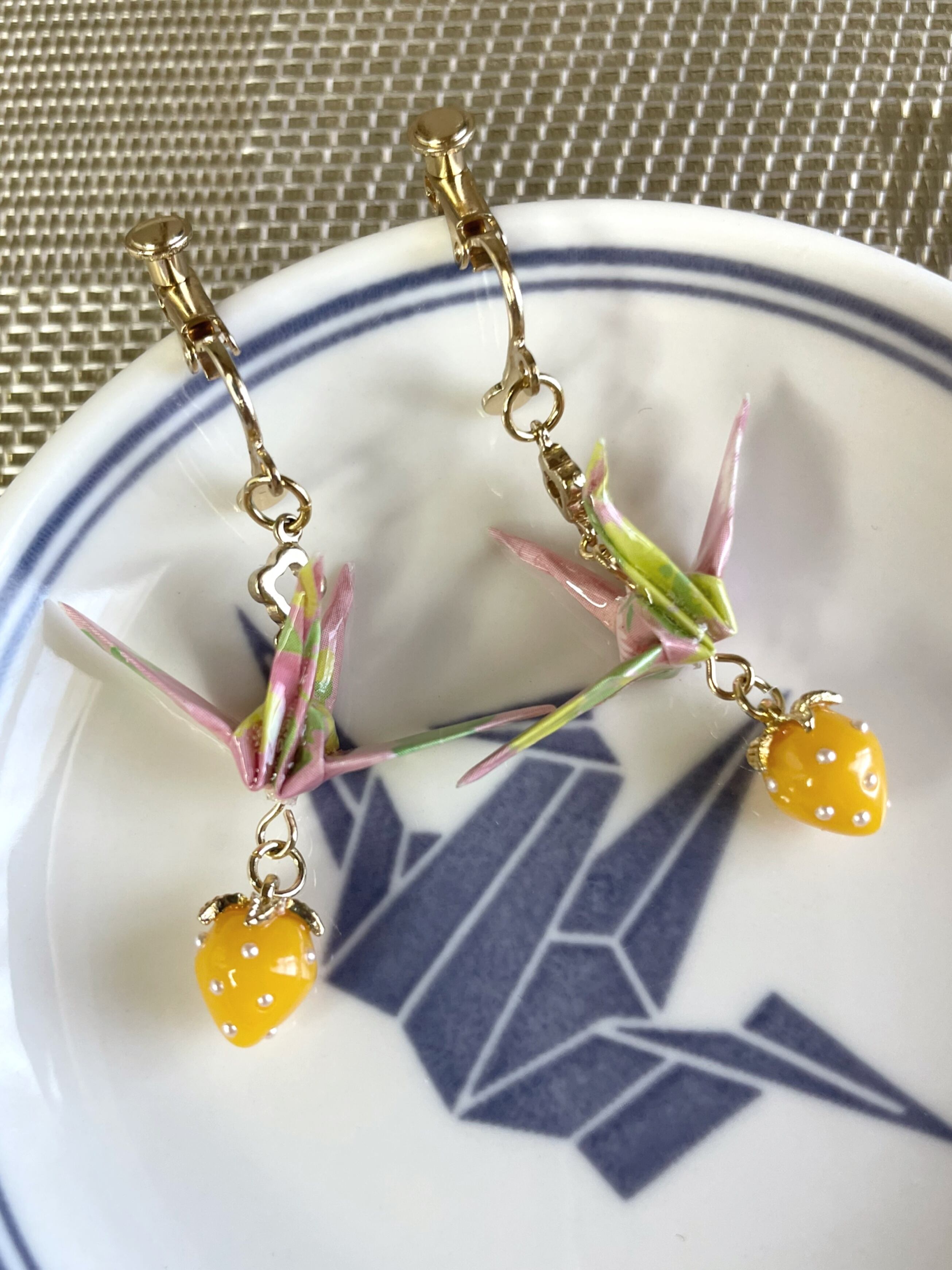 折り鶴イヤリング(苺とたんぽぽ)、新作がオンライン販売スタートしました!