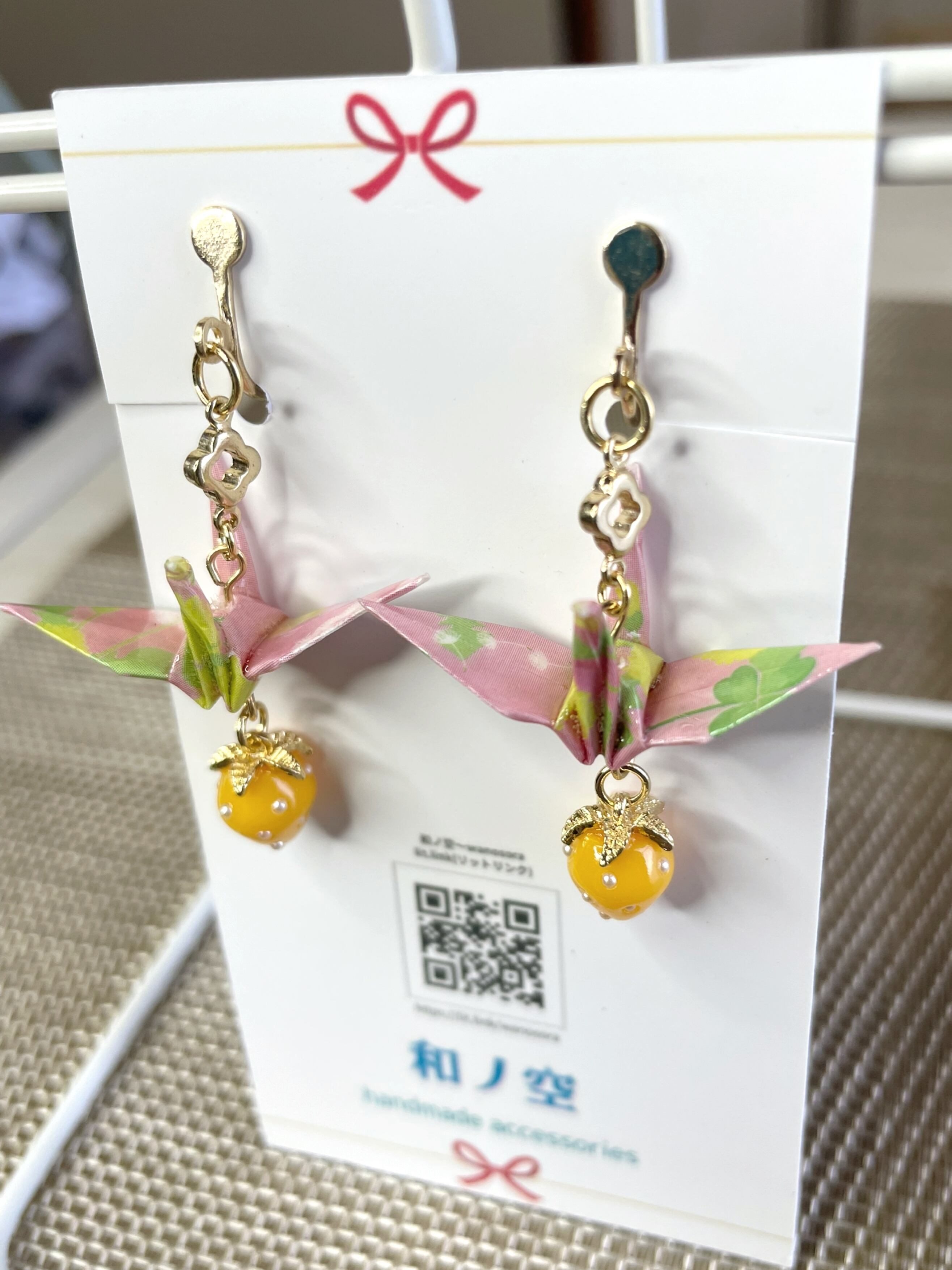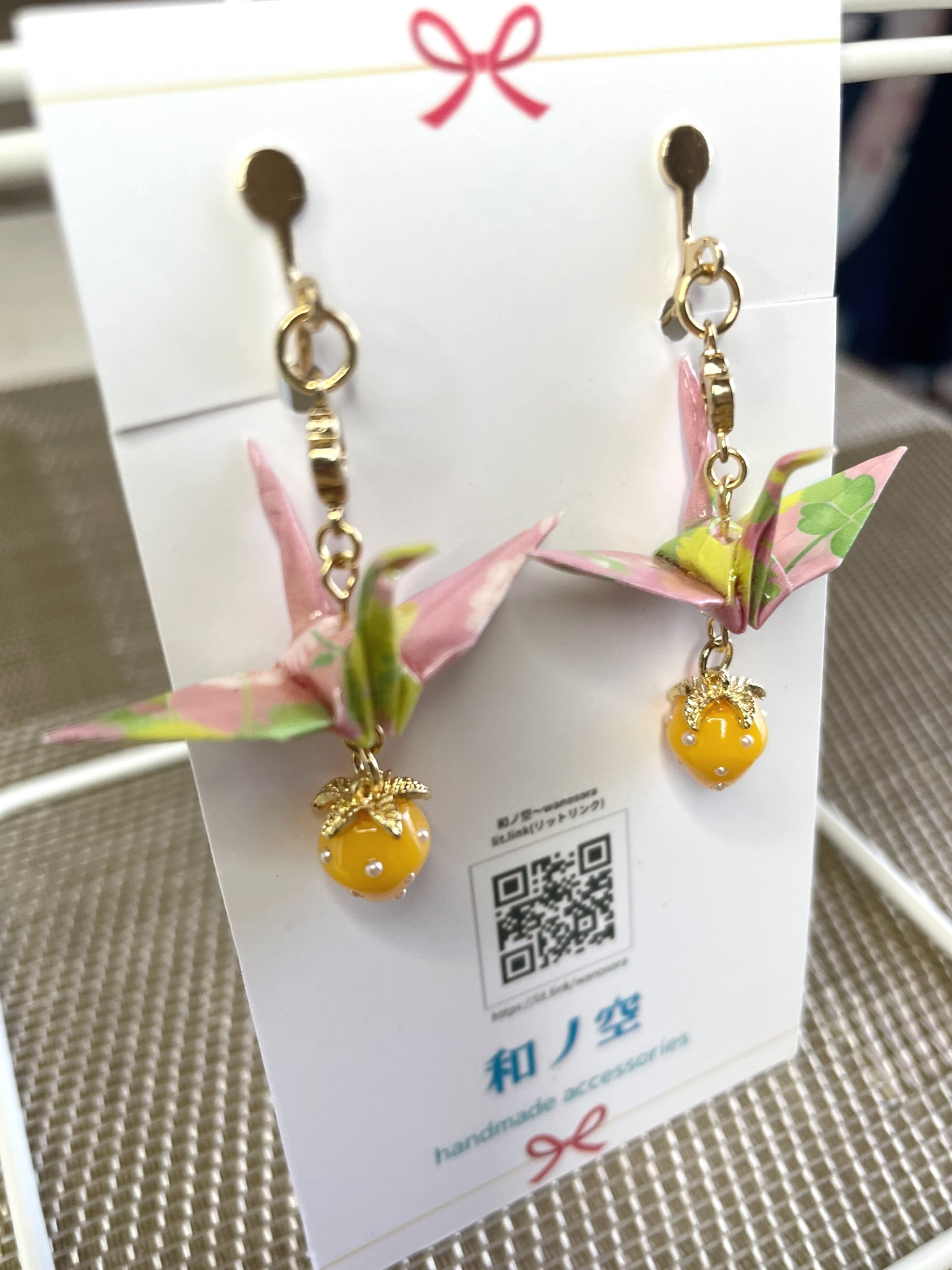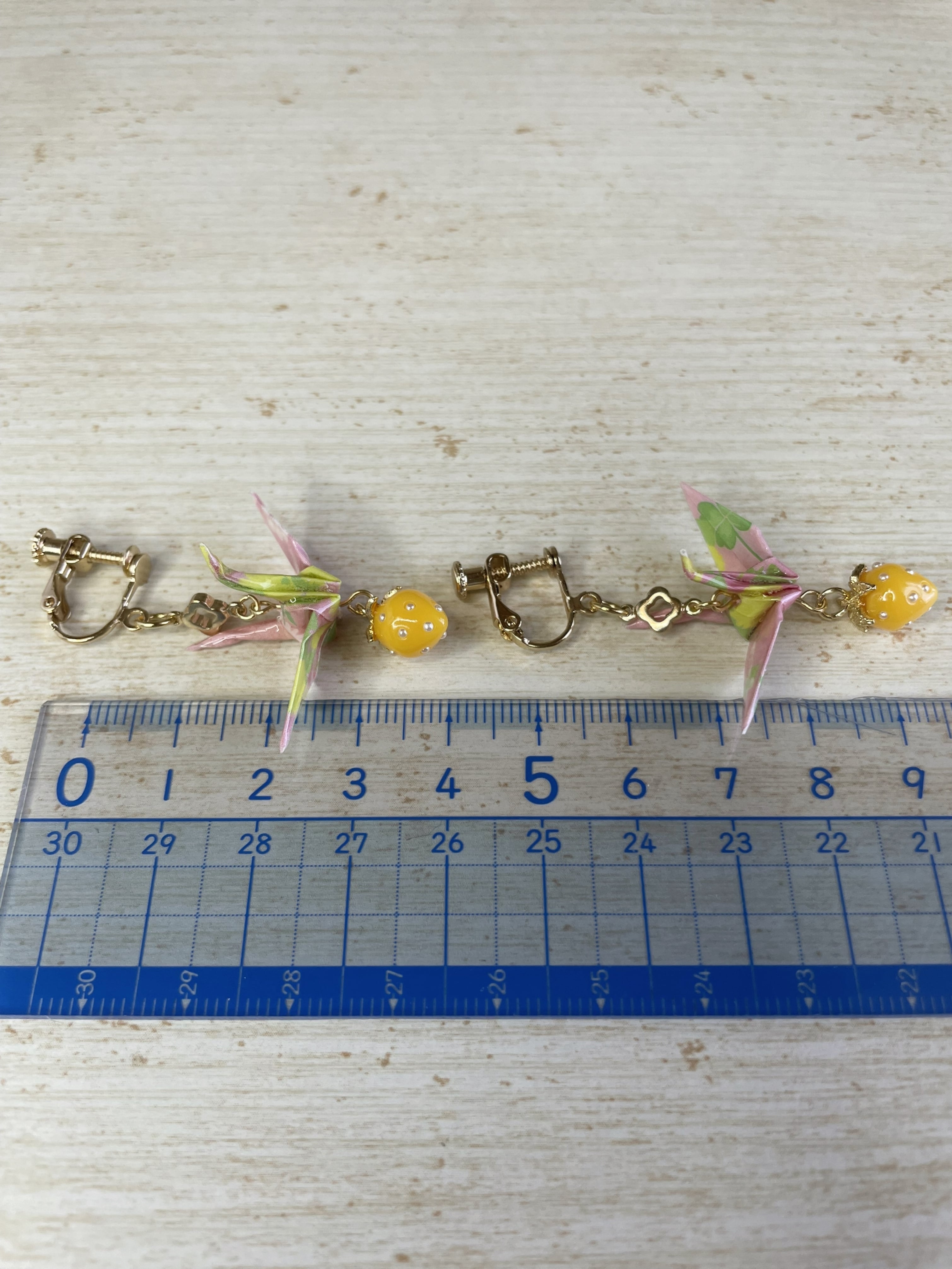 折り鶴イヤリング(苺とたんぽぽ)、新作がオンライン販売スタートしました!
