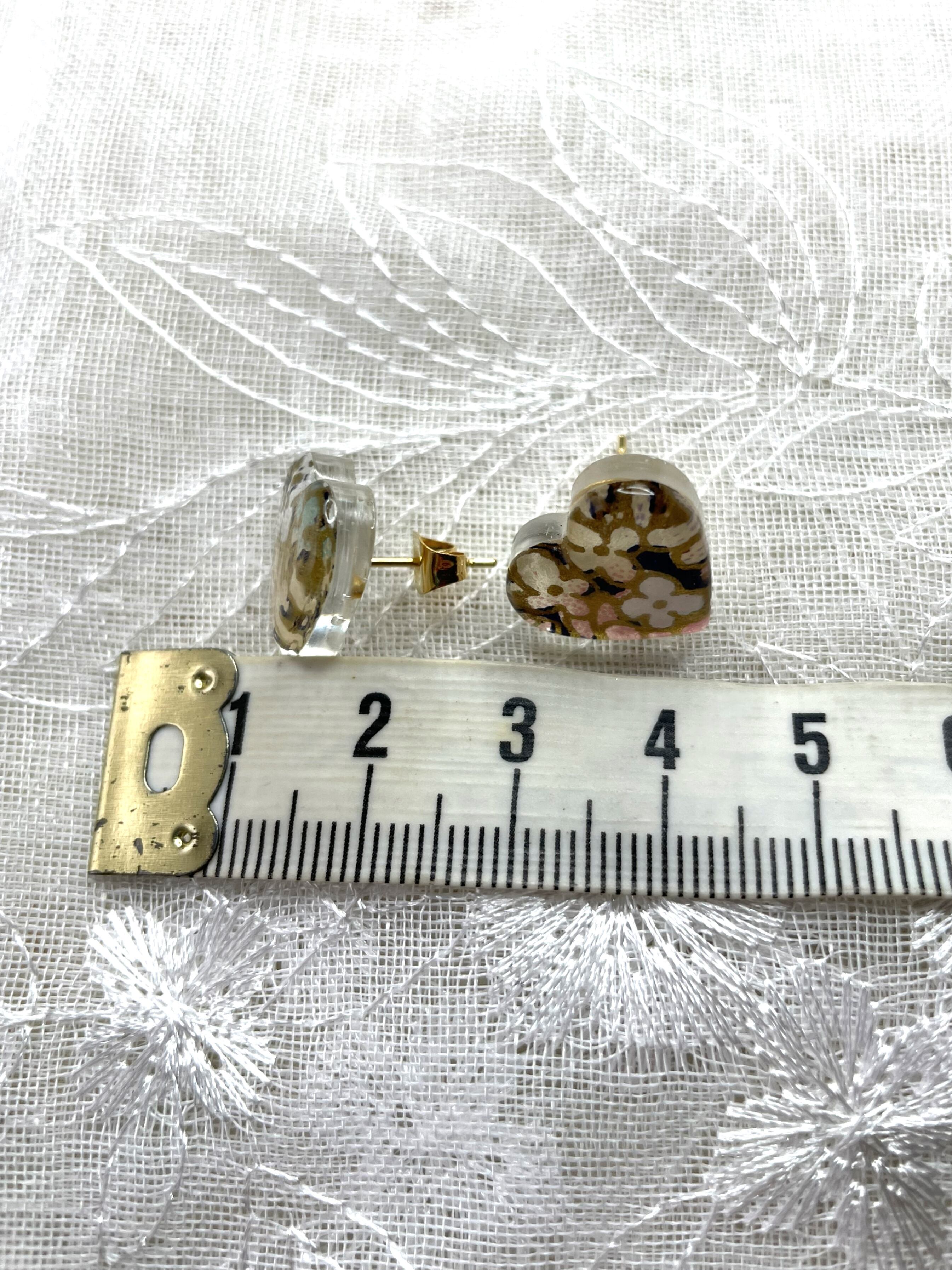 このピアスは本物の和紙をカットし、レジンの中にしっかりと閉じ込めたデザインです。強い衝撃には注意が必要ですが、和の美しさを引き立てるアクセサリーとして非常におすすめです。和服にも洋服にも気軽に取り入れられ、あなたの独自のスタイルを楽しむことが可能です。小さいサイズだからこそ、コーディネートにも取り入れやすさがあります。