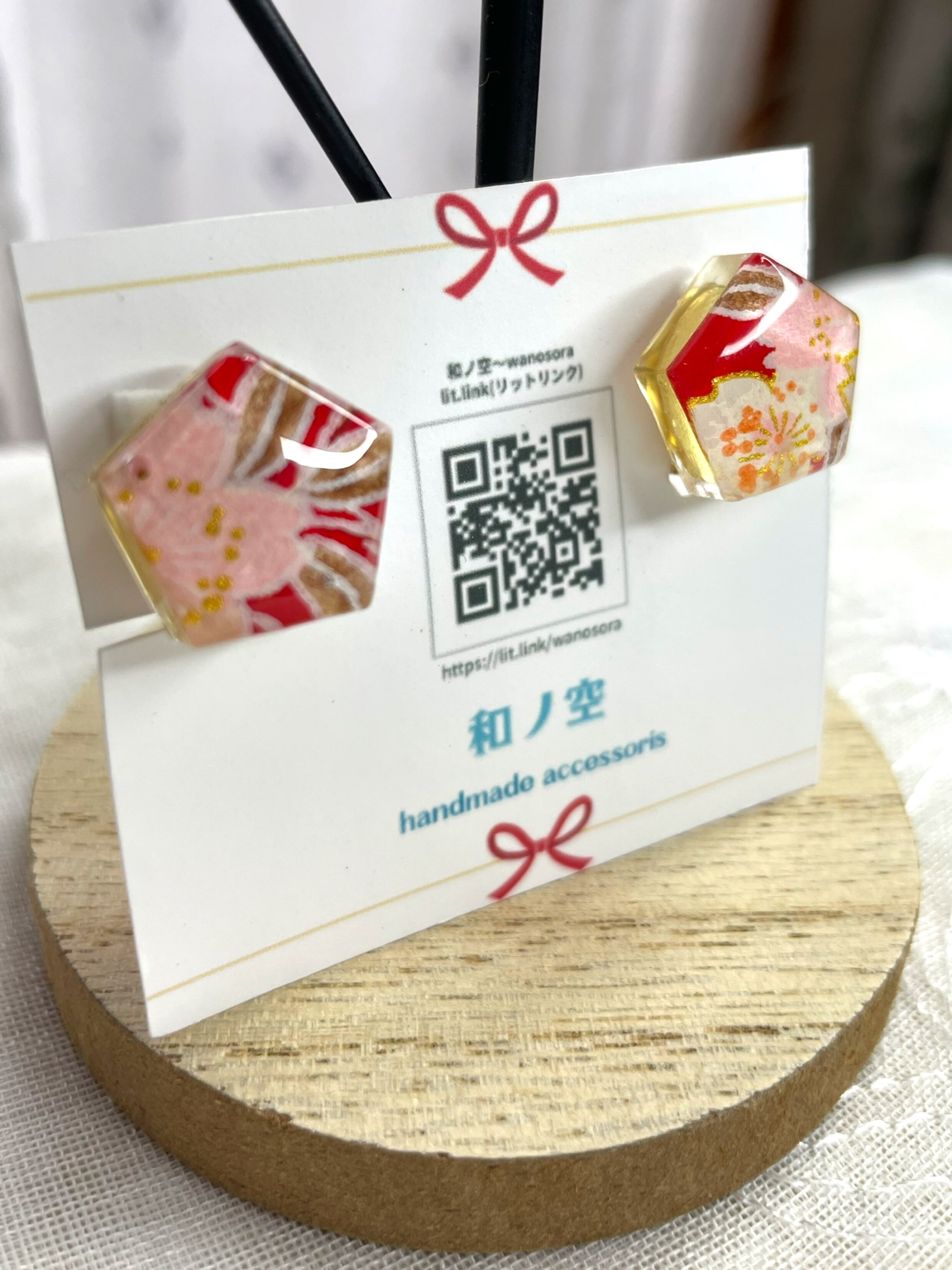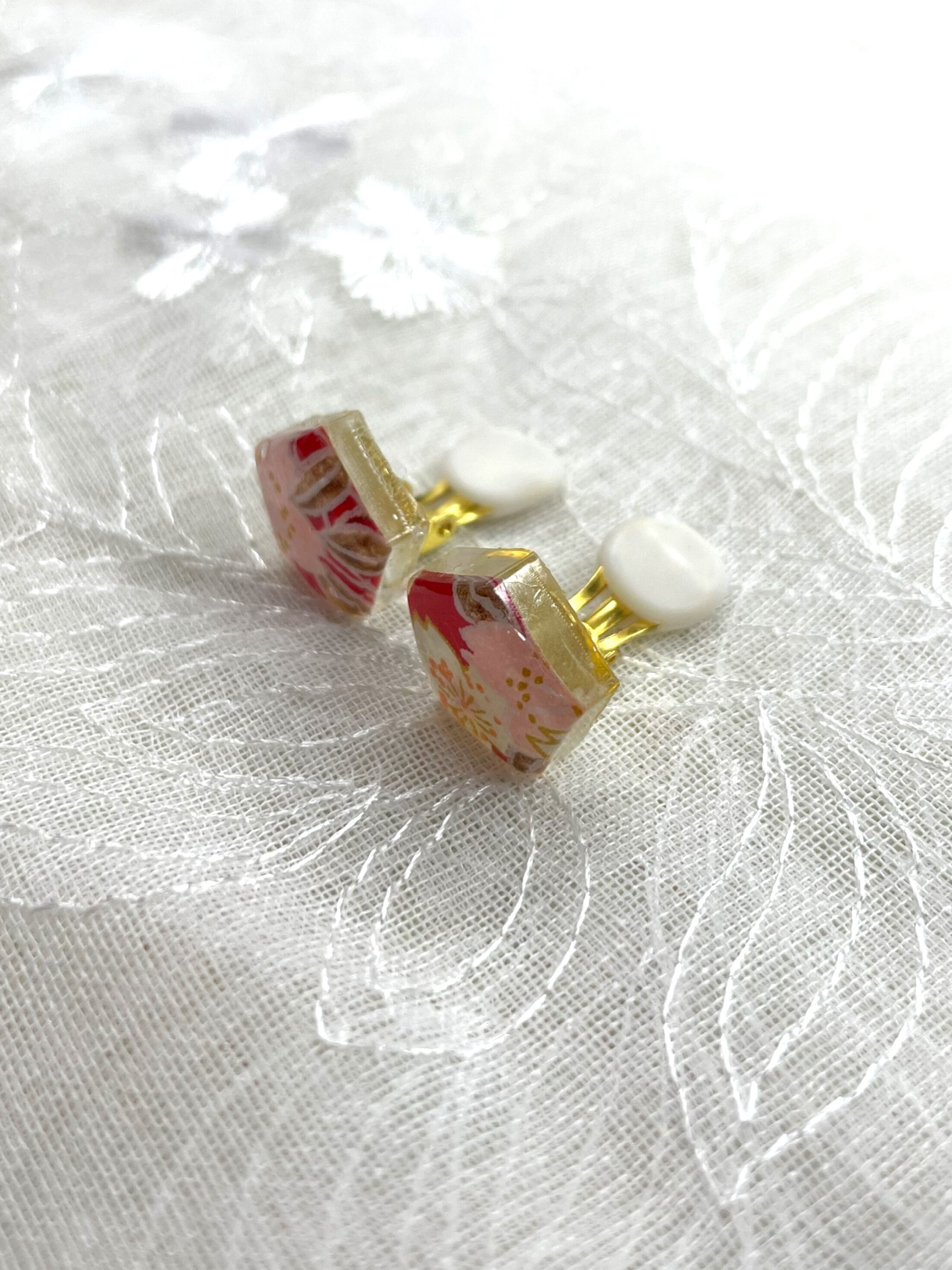 このイヤリングは本物の和紙をカットし、レジンの中にしっかりと閉じ込めたデザインです。強い衝撃には注意が必要ですが、和の美しさを引き立てるアクセサリーとして特におすすめです。和服にも洋服にも気軽に取り入れられ、あなたの独自のスタイルを楽しむことが可能です。コンパクトなサイズだからこそ、コーディネートにも取り入れやすさがあります。