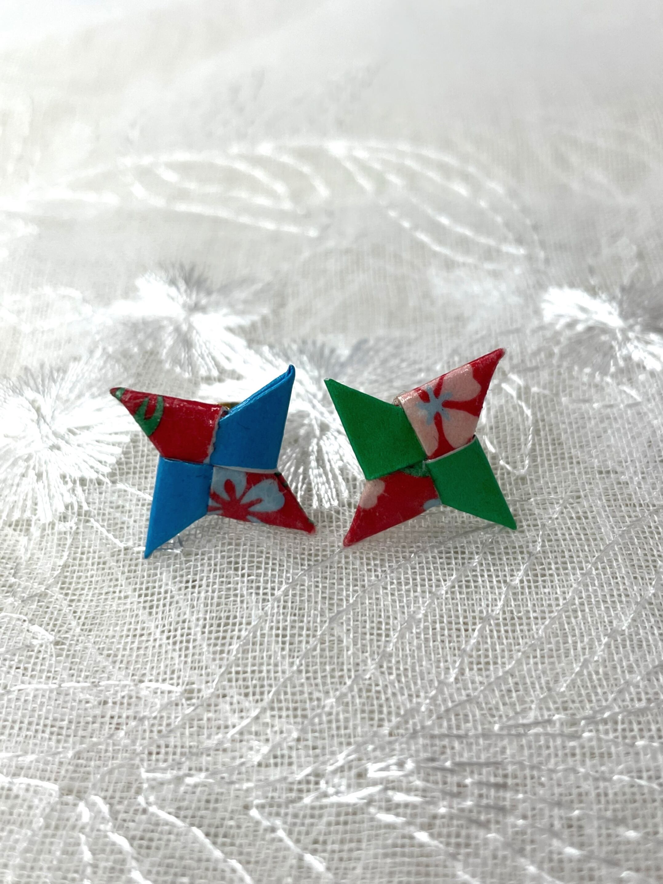 折り紙を使った手裏剣ピアス、オンライン販売スタートしました!