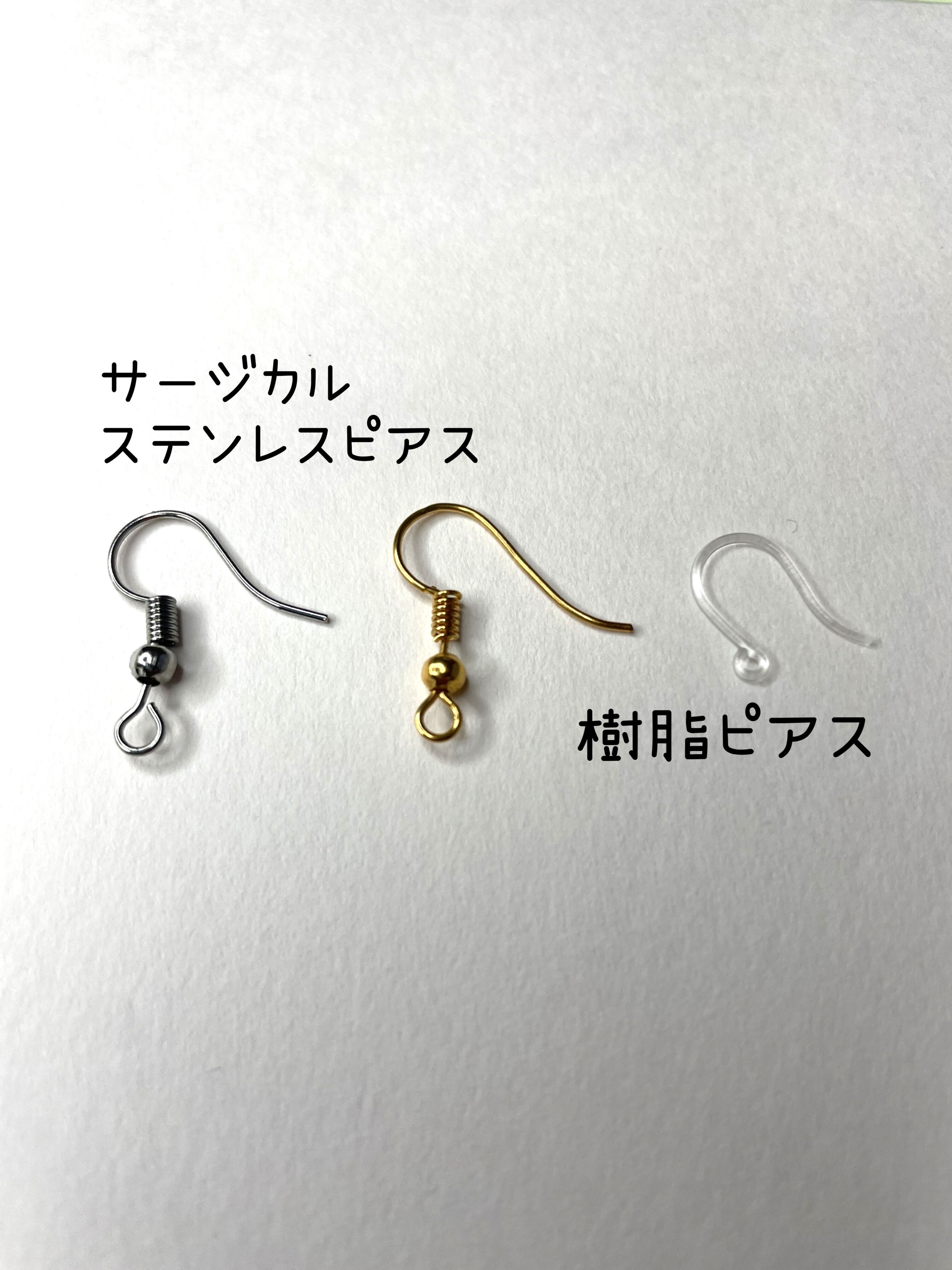 アレルギーに対応したサージカルステンレス、樹脂ピアスに変更ができます。