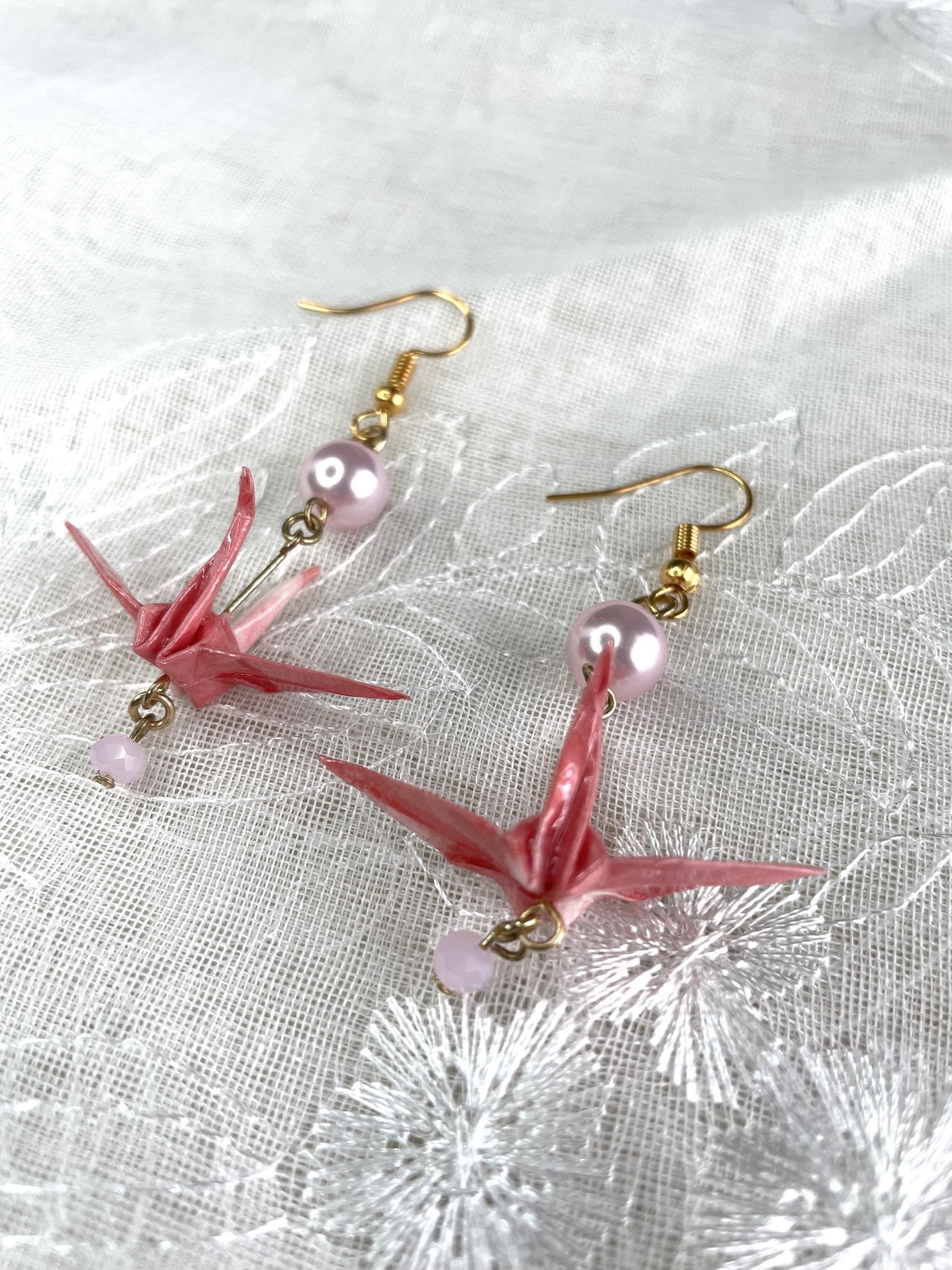 すべて手工芸で丁寧に仕上げられていて、手作りならではの温もりを感じることができます。桃色の和紙ピアスは耳元でさりげなく美しさを放ち、持ち運ぶのが楽しみになる素敵な魅力が溢れています。様々なシーンであなたの個性を引き立てることができるアイテムです。